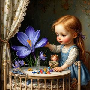 Утром она встала и побежала к своему столику посмотреть, там ли ее цветочки.