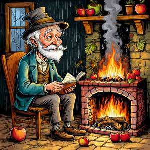 Жил-был старый поэт, настоящий хороший поэт и очень добрый. Раз вечером сидел он дома, а на дворе разыгралась непогода. Дождь лил как из ведра, но старому поэту было так уютно и тепло возле кафельной печки, где ярко горел огонь и, весело шипя, пеклись яблоки.